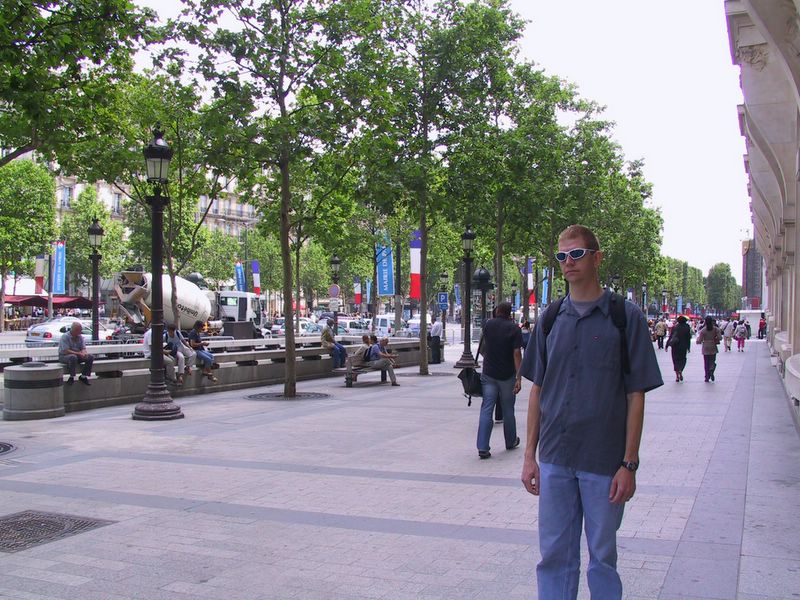 France Day 1 -- Travis looking grumpy on the Champs-Elysées