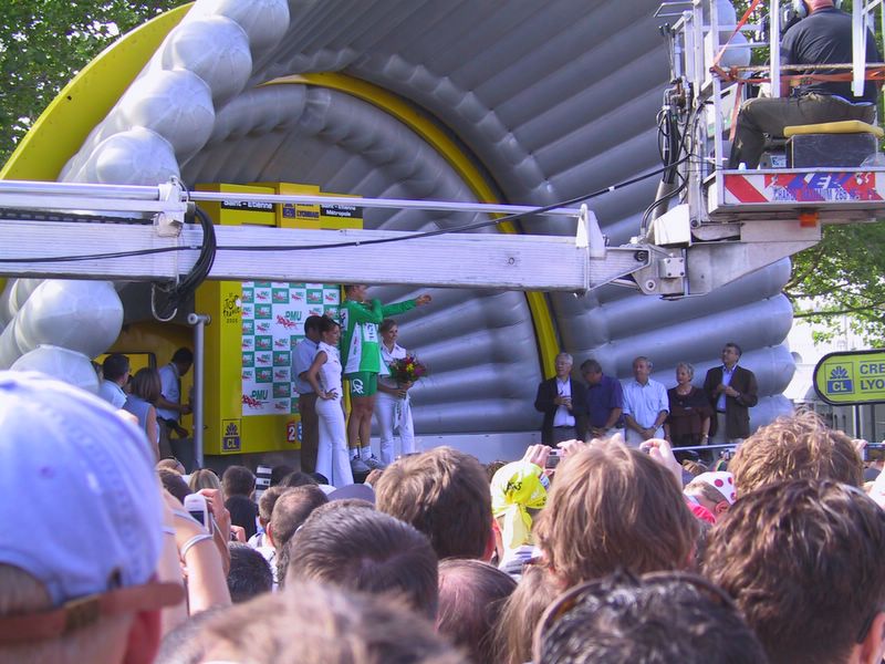 France Day 2 -- Thor Hushovd putting on green points jersey